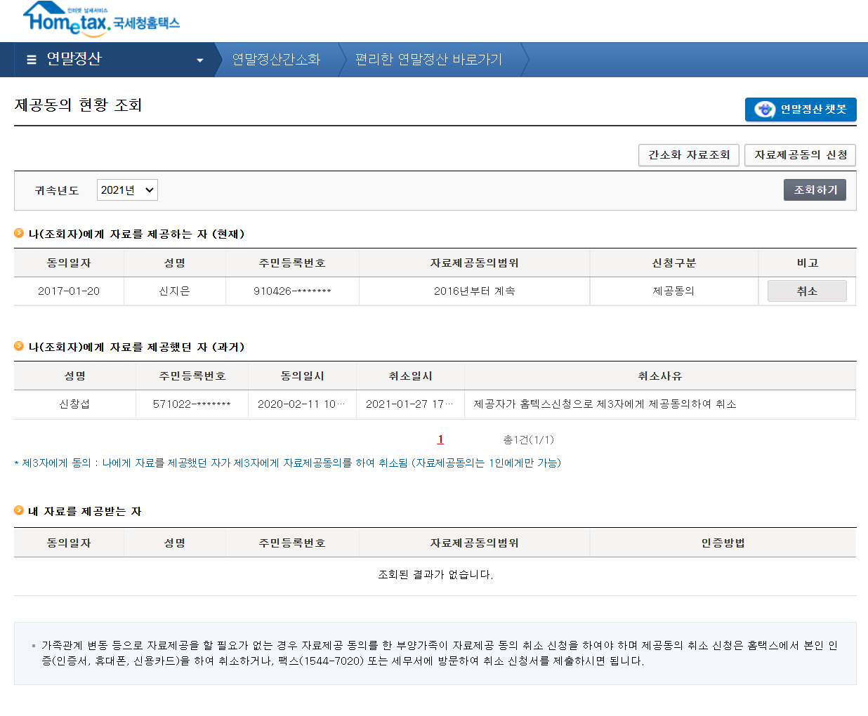 아버지는 과거 제공동의 취소가 되어있는데