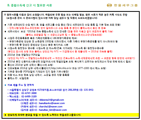 ★프리랜서(사업소득자) 2016년 종합소득세 준비서류 안내★