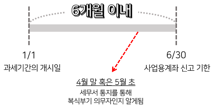 (전문직사업자의 경우 사업개시연도 다음 과세기간 개시일)부터 6개월 이내(1.1~6.30)에 사업장 관할세무서에 신고하여야 합니다.