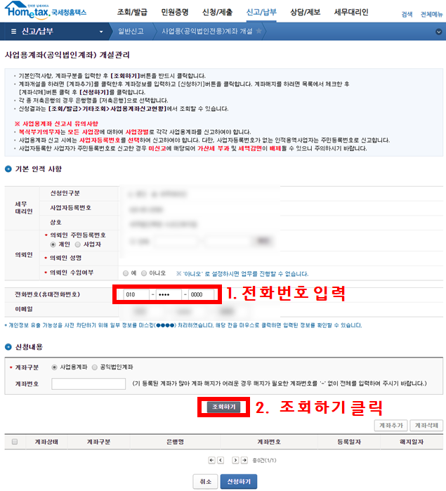 2. 홈택스에 사업용계좌를 등록하는 방법