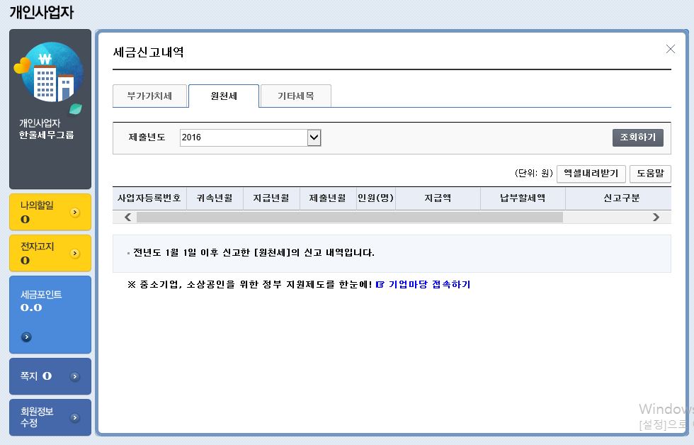 2016년에 제출한 내역이 뜹니다.