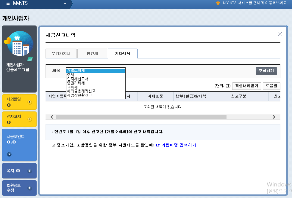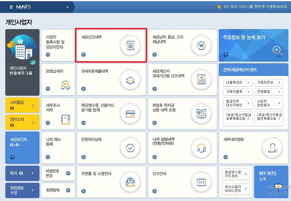 첫번 째 줄에 있는 세금신고내역 메뉴로 들어갑니다.
