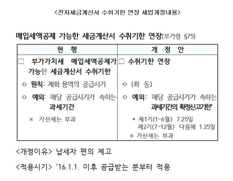 2015년까지의 종전 규정으로는 전자세금계산서를 과세기간까지 수취하지 못한 납세자들의 부담이 크고 불합리한 점이 없지 않아 있었습니다.
