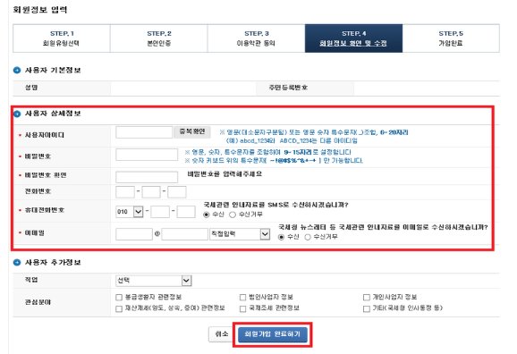 이제 하단의 회원가입 완료하기 버튼을 클릭해주시면 회원가입 절차가 완료됩니다